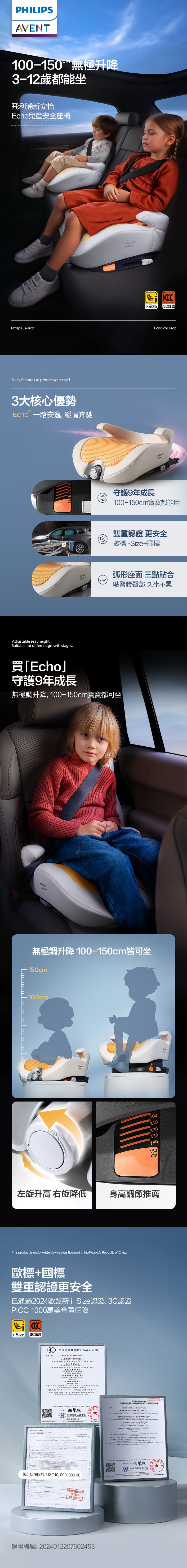 Philips Avent 兒童汽車安全座椅 ECHO|4-12歲|高度多段調節|歐盟認證
