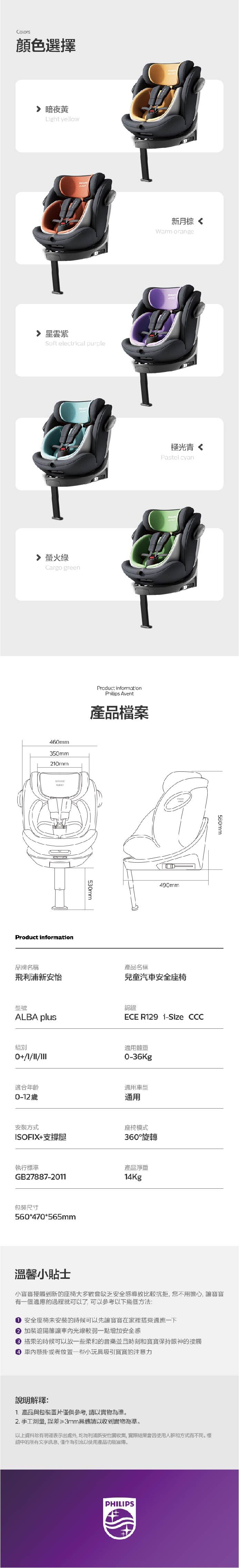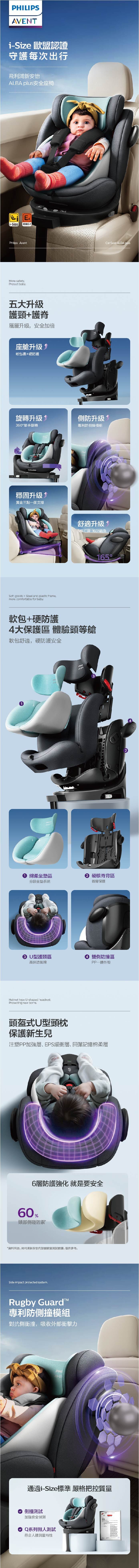 Philips Avent 嬰幼兒汽車安全座椅 ALBA PLUS|0到12歲|ISOFIX接口|i-Size標準|Rugdy Gruad專利防側撞模塊