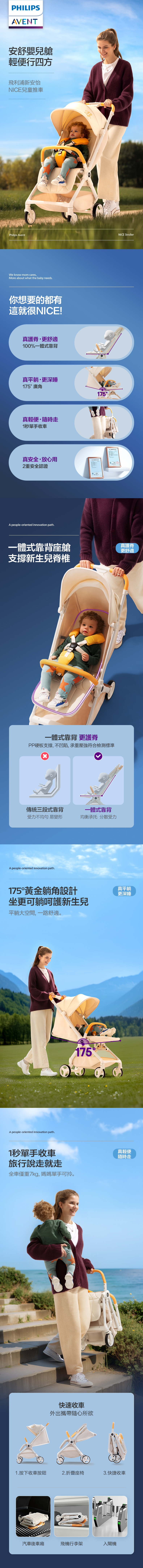 Philips Avent 嬰兒手推車 NICE 尼斯|0-36個月|38Cm加寬座位|單手收車|歐盟EN1888認證