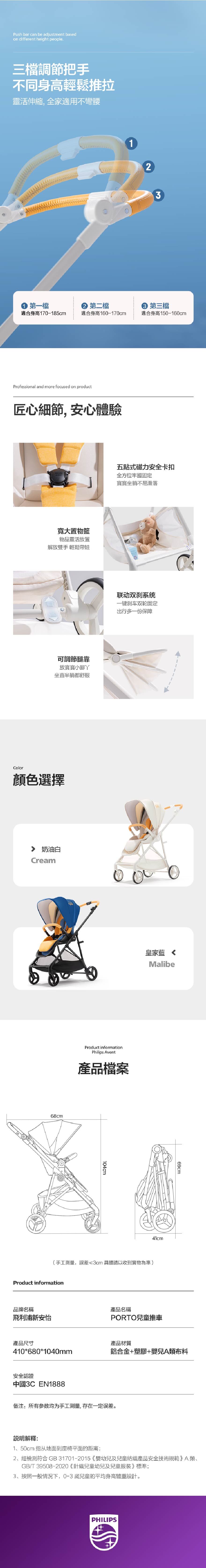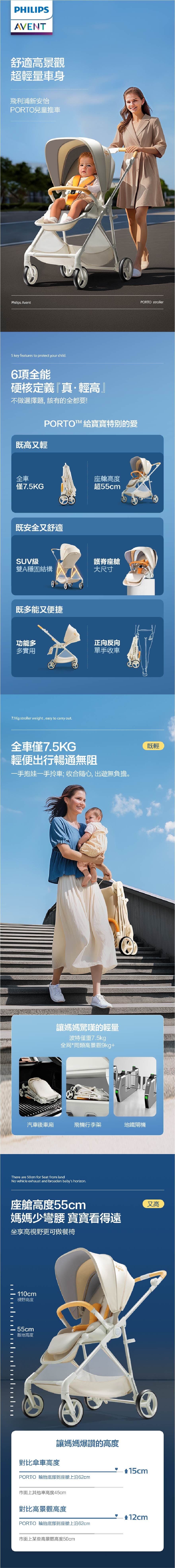 Philips Avent 嬰兒手推車 PORTO 波特|0-36個月|座位高度55cm|正向反向|單手收車|歐盟EN1888認證
