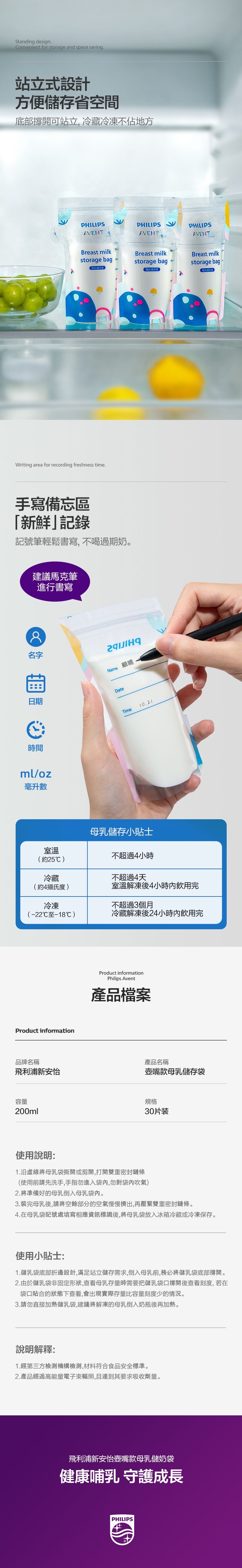 - 飛利浦新安怡 便攜一次性母乳儲奶袋|200mL|30個 x1